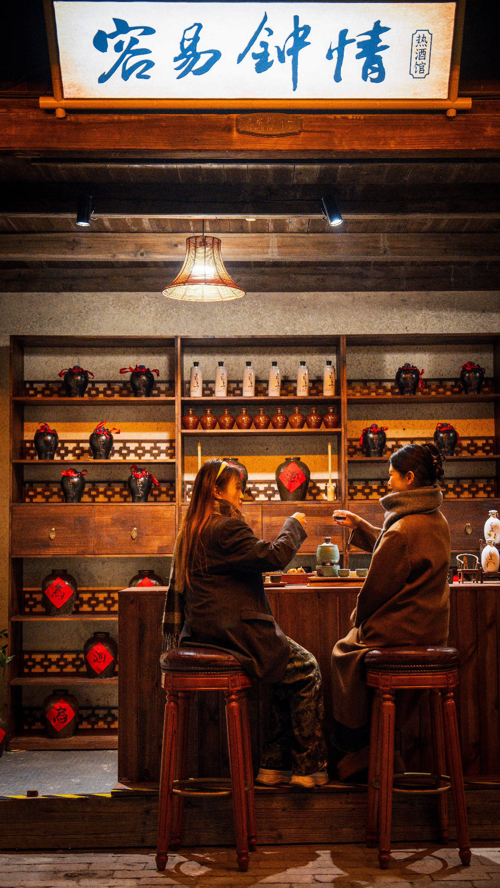 灵水街17号的容易钟情热酒馆复原了“零拷”时光——就像从前带着自家瓶罐去打酒,游客可通过互动玩法兑换米酒,开启一场浪漫邂逅。馆内醇厚地道的热乌酒、热煮红酒,让微醺成为冬日养生的独特仪式。再抽个“杯盏印书盲盒”,酒杯里盛着的,不只是酒,更是“酒中见江南”的诗意。