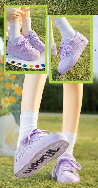 调色盘板鞋上脚能让脚腕及小腿在视觉上看起来更加纤细,与鞋身同色的纯色鞋带有效提高整体统一度,整体看起来如同一块块口味丰富的彩色小蛋糕,减龄效果肉眼可见,日常穿搭也能有更高的自由度。